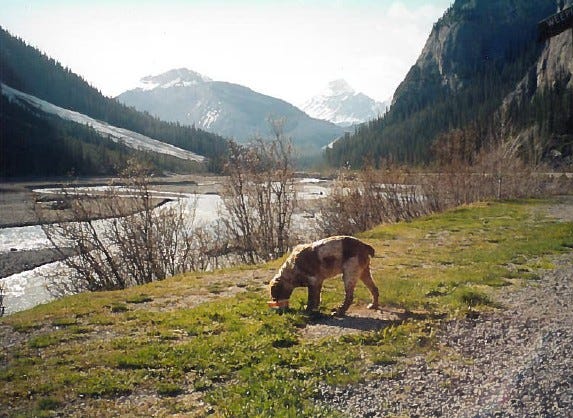 Later, after she had healed, Abby and I would go on more outdoor adventures. She would again roll in horrible decaying things. And after that I would wash her.